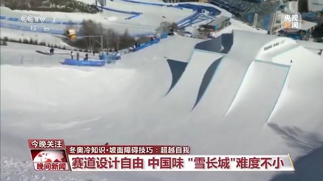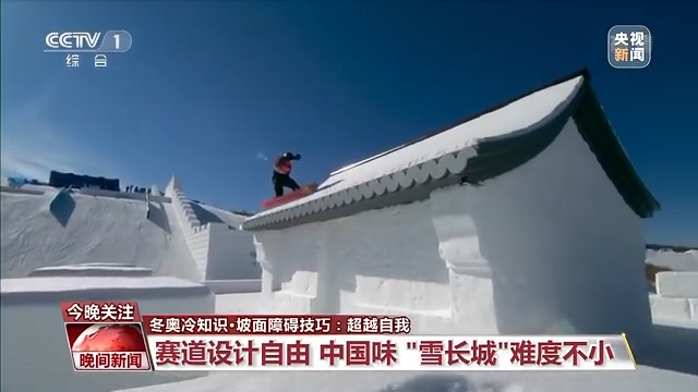 北京冬奥会坡面障碍技巧赛道融入了长城元素,打造出一条极具难度和挑战的雪长城,其中屋檐道具上的中式瓦片造型更是令人印象深刻。
