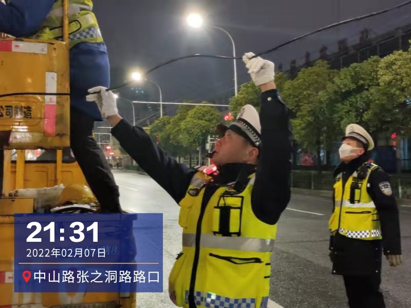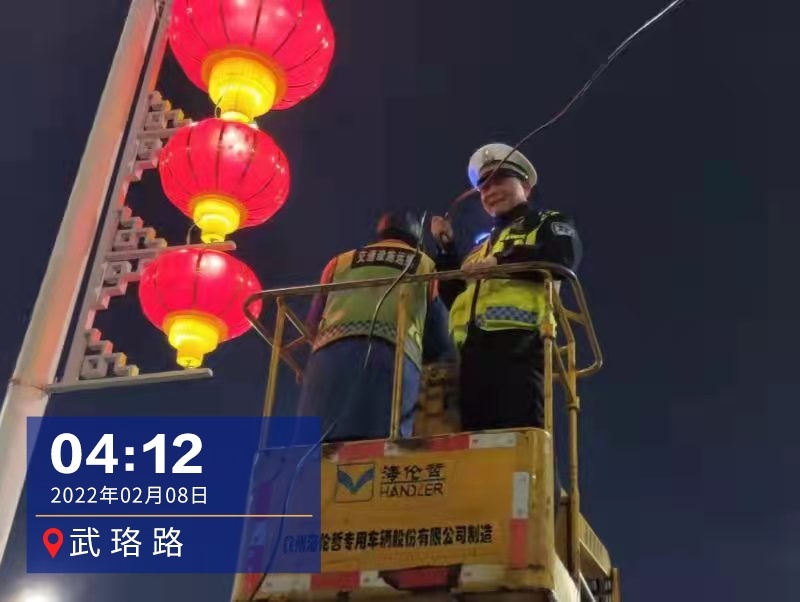 “撒了盐,路上就不会结冰了。”21时30分,交警刘五桥配合环卫部门在人行天桥除冰撒盐,融雪化冰,此时有位市民正下楼梯,他上前暖心提醒其沿着防滑草垫行走,并对移位的草垫重新铺垫。在中山路张之洞路路口,信号灯突然出现故障,“绝不让故障过夜。”刘五桥协助抢修,信号灯很快恢复正常。