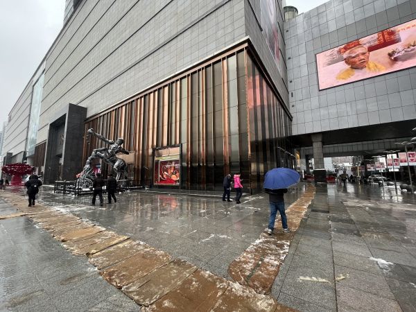 在解放大道商圈,武商MALL国广、武广、世贸积极开展除雪工作,涉及到门前、停车场出入口、地铁接驳出入口、汽车停泊口等重要点位加派人员上阵,快速相应,凌晨时分便有工作人员开始除雪工作。“增派人员随时巡逻,机动除雪,动态维护地面无积雪状态。”此外,武商MALL里保暖生活物资充足,为路过与到访市民提供雨具租借、暖姜茶等暖心举措。