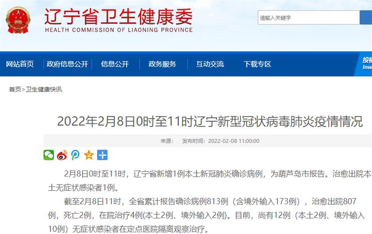 2月8日上午,辽宁省卫生健康委员会官方网站发布消息,2月8日0时至11时,辽宁省新增1例本土新冠肺炎确诊病例,为葫芦岛市报告。极目新闻获悉,辽宁有城市发布通知要求近期非必要不要前往葫芦岛,尤其是葫芦岛绥中县。