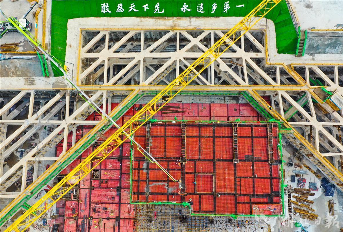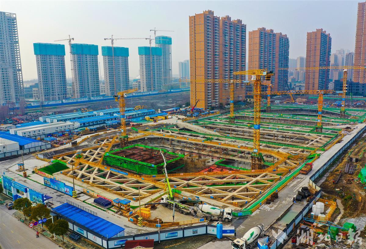 2月5日晨,武汉市中心医院杨春湖院区建设工地上热火朝天。为了项目能够早日完工交付使用,中建三局总承包公司600余名建设者加班加点,全力完成地下室的底板安装工作。该项目是武汉市公共卫生应急管理体系中的重点项目,总建筑面积23.1万平方米,计划2023年5月交付使用。(湖北日报全媒记者田悦 通讯员王腾、张世宇 摄 )