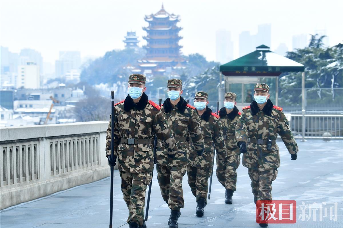 下哨后他们从黄鹤楼前走过