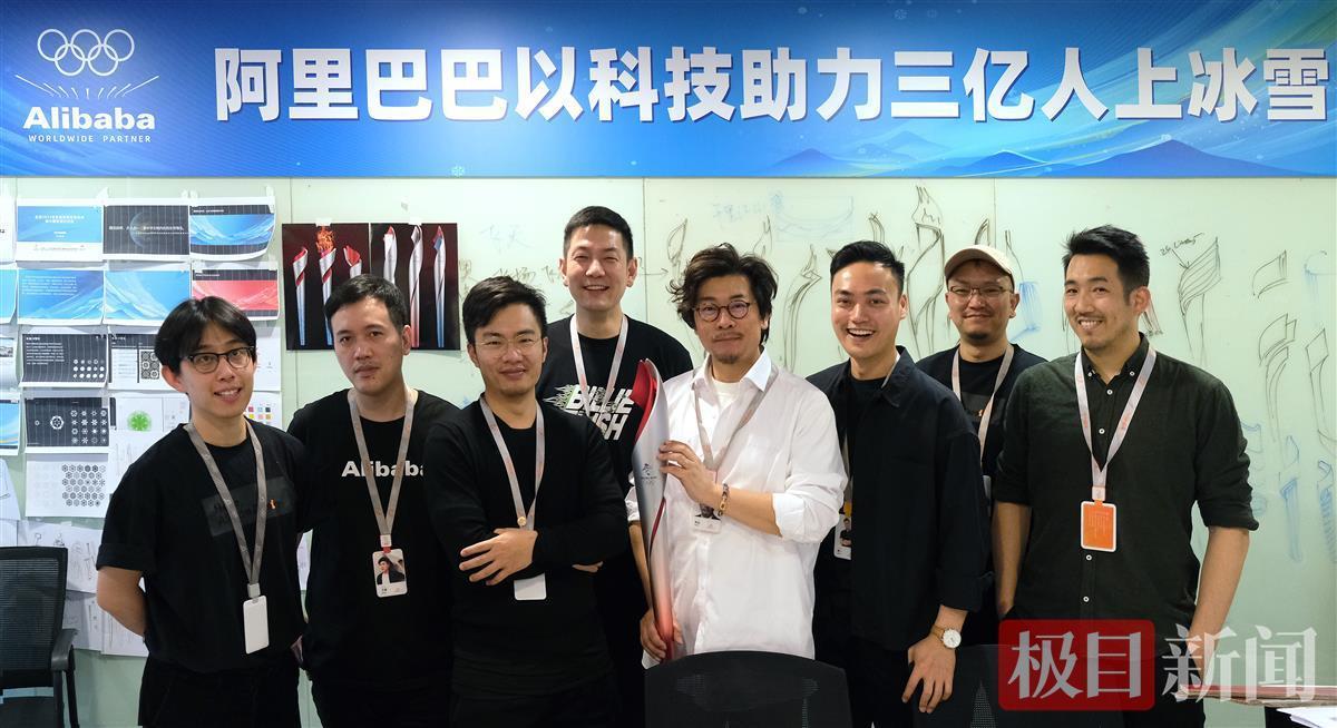 饶杰(左四)和阿里巴巴冬奥火炬外观设计团队