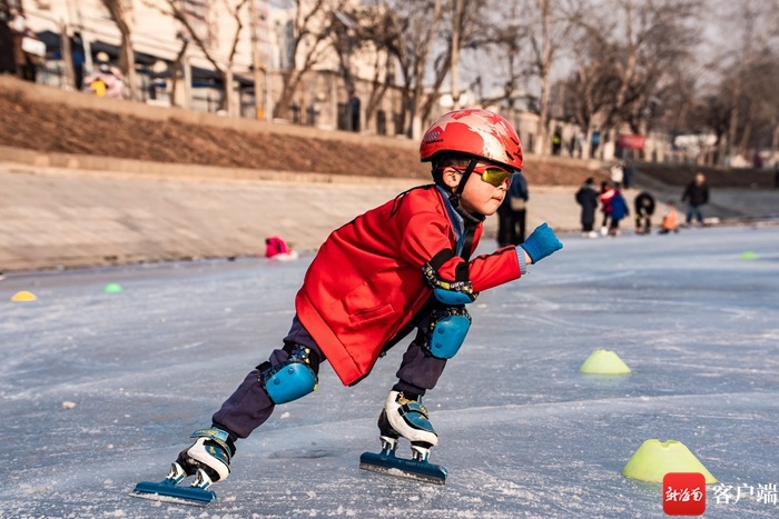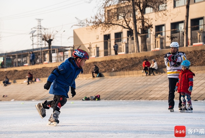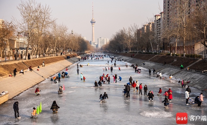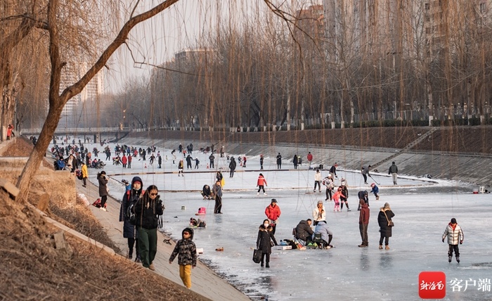 据了解,在北方,市民在这种户外河道、湖面上滑冰,被称为滑“野冰”。滑于天地之间,呼吸着新鲜、冰爽的空气,目光所及格外广阔,感受比在室内滑冰场要畅快得多。周边市民向新海南客户端记者介绍,金沟河是永定河的一条引水渠,秋冬季节水深几十厘米,算是比较安全的一处滑冰场。每年的冰冻期长达2个多月,又向市民开放,故而成为北京滑“野冰”的绝佳场所,受到北京市民的追捧。