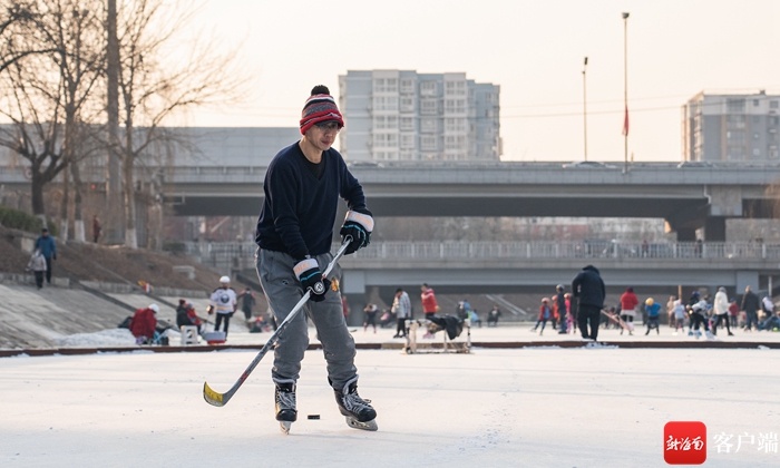 市民在打冰球,体验冰上乐趣。特派记者 李昊 摄