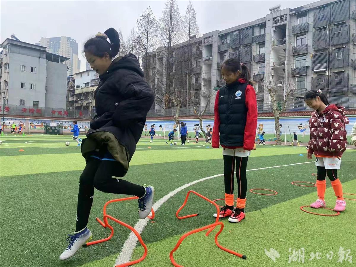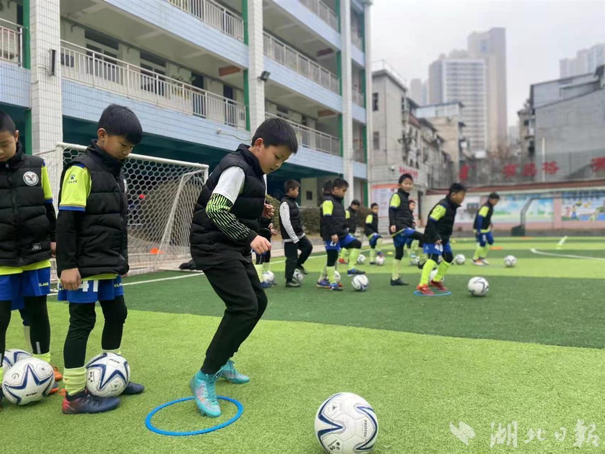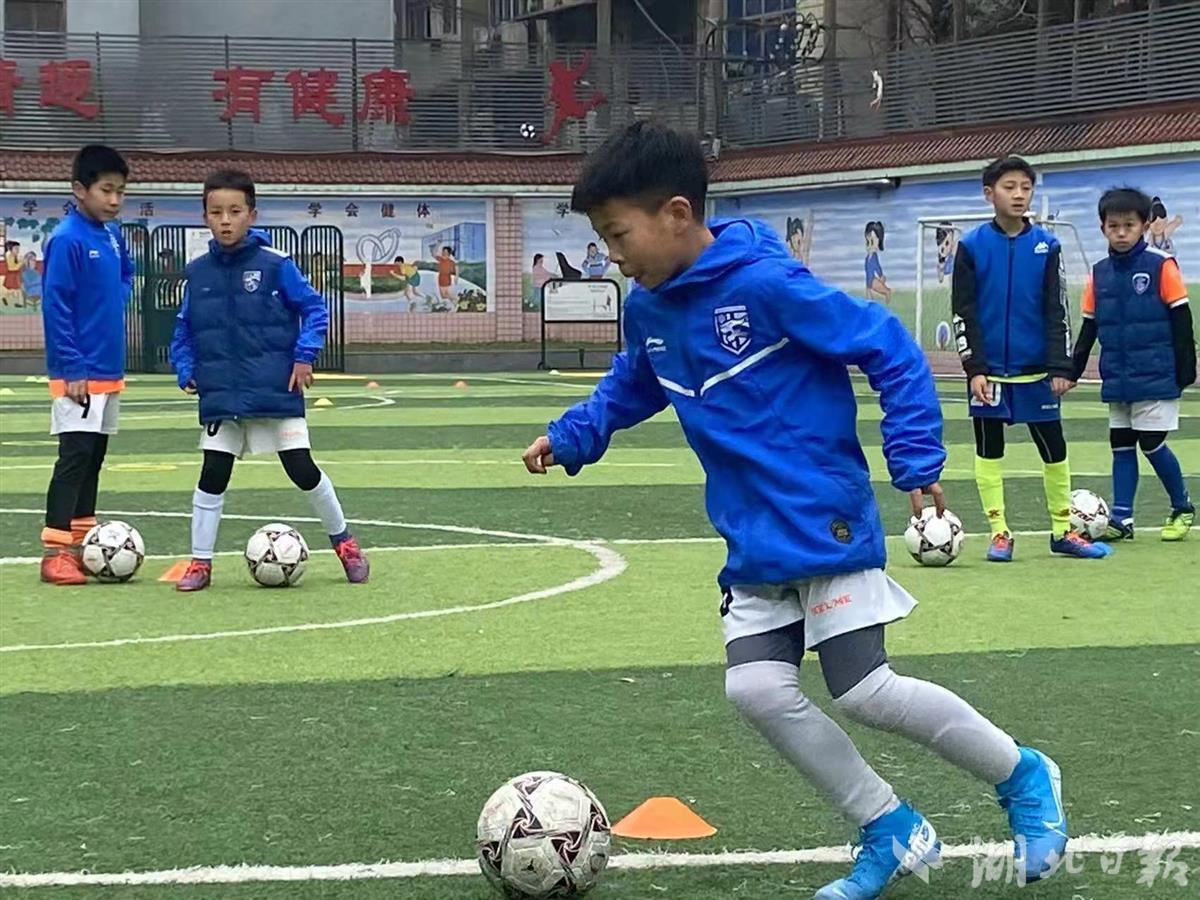图为:2月10日,硚口区新合村小学足球队新年开训。(湖北日报全媒记者 朱惠 摄)