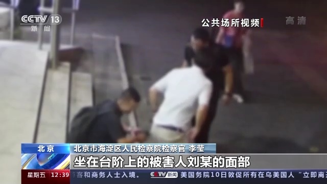 北京市海淀区人民检察院检察官 李莹:嫌疑人突然上脚踹了被害人面部一下,两人之间就互相撕打起来了,嫌疑人一下就把被害人推倒在地,然后用双手拽住他的头部,使劲往地上撞了一下。
