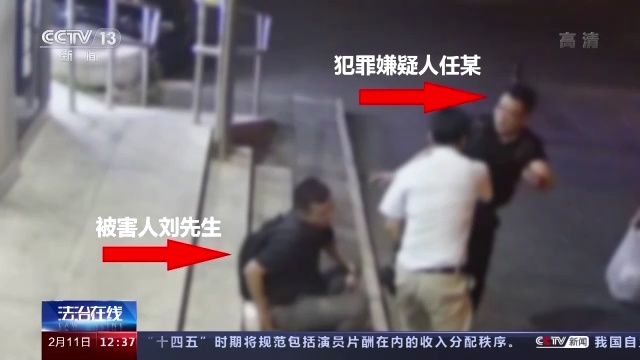 当晚11点多,聚餐结束后,任某、刘先生与另一名同事三人在饭店门口准备打车回他们入住的宾馆。公共场所视频画面显示,坐在最边上的黑衣男子为任某,坐在中间的是被害人刘先生,白衣男子是他们的同事。起先,三人坐在台阶聊天,任某不时还将胳膊搭在刘先生的肩上。