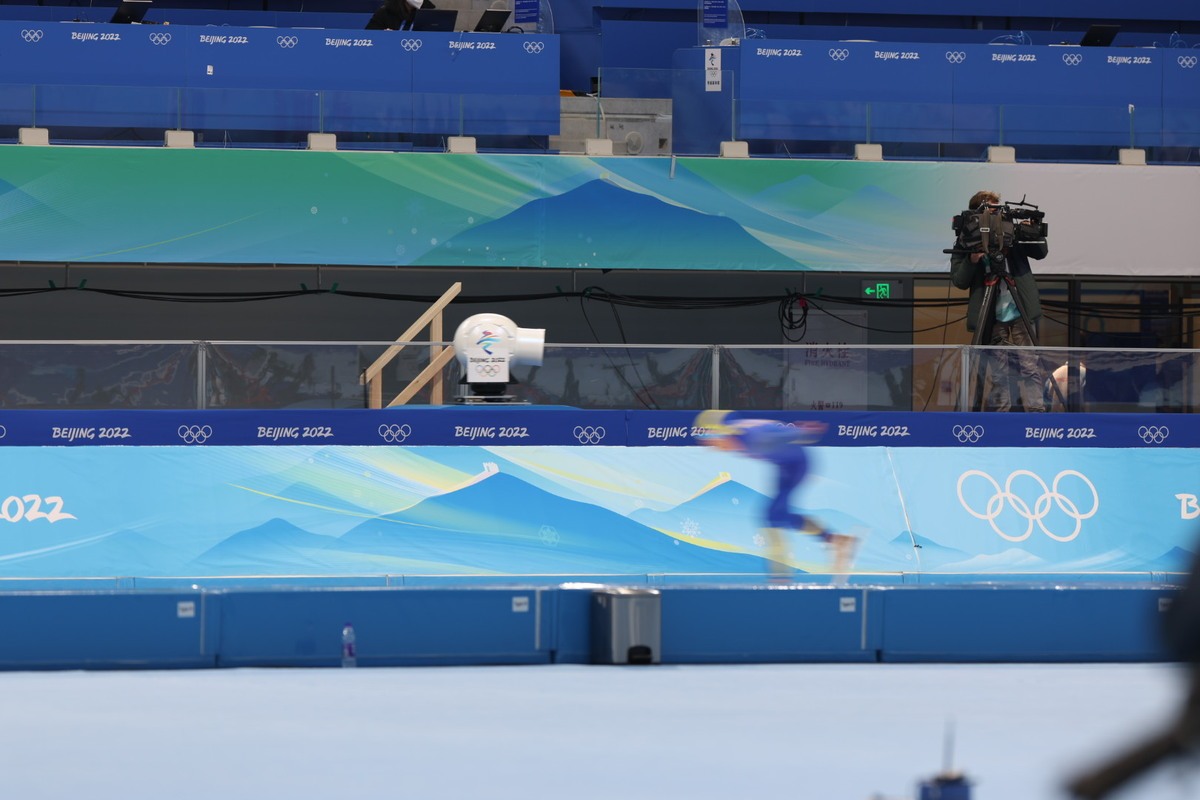 中国日报2月11日电(记者 冯永斌)2022年2月11日,北京2022年冬奥会速度滑冰男子10000米比赛在国家速滑馆“冰丝带”举行。