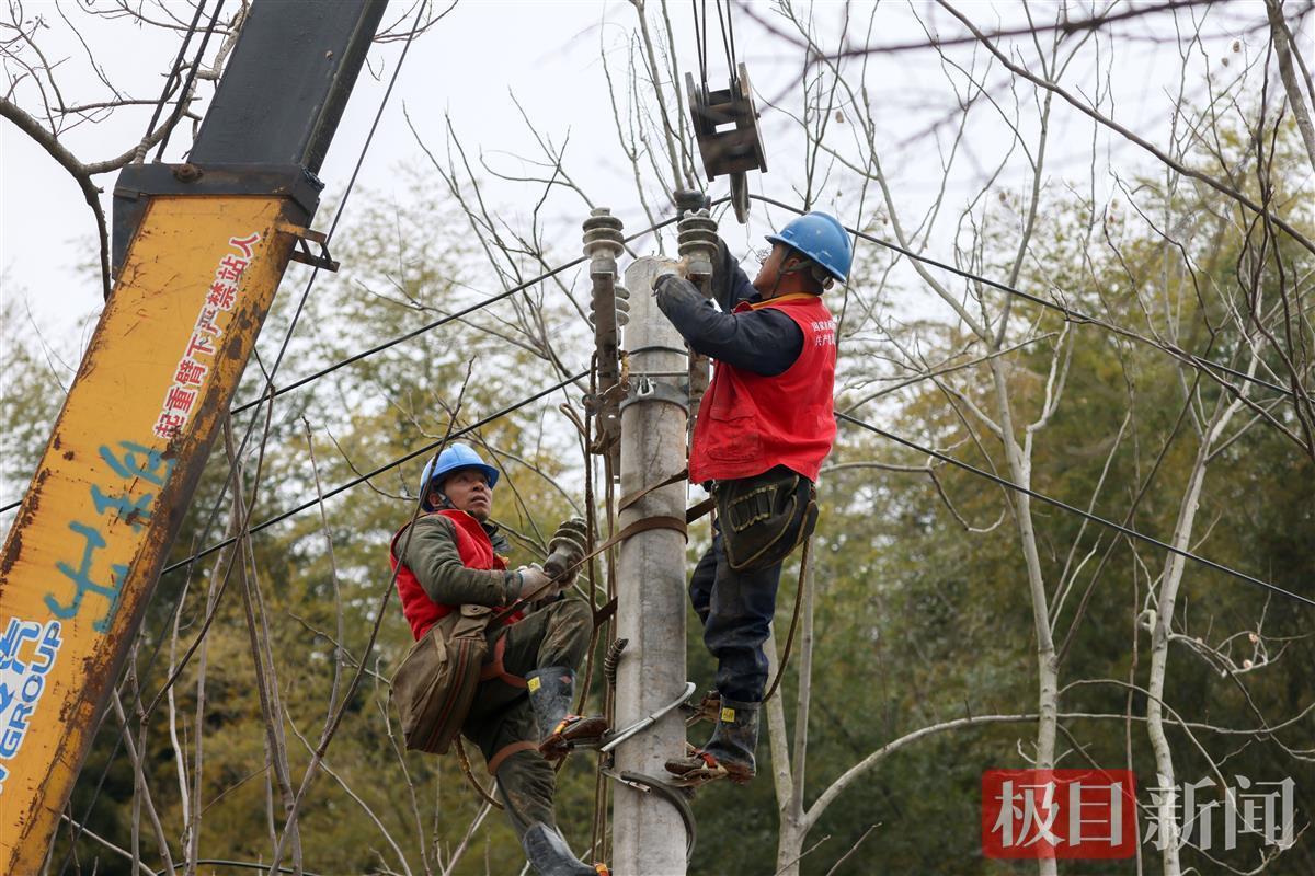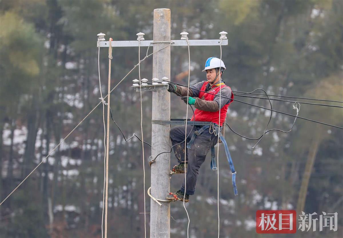 2月10日,国网咸安供电公司大幕供电所“跑山电工”党员服务队,在咸安区大幕井头村拆除被大雪压倒的电线杆,并重新架设线路恢复供电,皑皑白雪中,咸宁跑山电工留下最美“图景”。