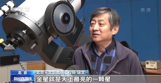 北京天文馆高级工程师 寇文:金星就是天上最亮的一颗星,它自己本身不同的时间,它的亮度也会有变化。在什么时候最亮呢?它既离地球足够近,同时它被太阳照亮的那一面朝向地球的面积足够多,那么今年的2月13日正好是处于这一阶段,金星的亮度达到最亮。
