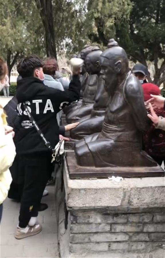 2月12日,河南周口太昊陵景区内,一小伙用鞋猛抽秦桧等人雕像的视频在网上流传。视频中,多位游客正在排队依次拍打秦桧,唯有一小伙脱鞋抽打。景区工作人员回应极目新闻记者称,近日景区内确有此事发生,工作人员现场已制止该行为,以后会在雕塑周围加强管理。