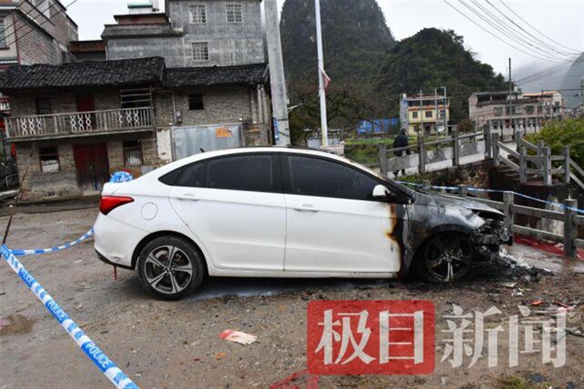 极目新闻记者了解到,事发地位于广西昭平县黄姚镇巩桥村附近。12日,巩桥村居民李女士(化姓)告诉极目新闻记者,几个小孩放鞭炮引发火灾点燃了汽车,派出所和消防都过来了。火被扑灭后,发现车辆发动机、车头都损坏严重,估计是报废了。