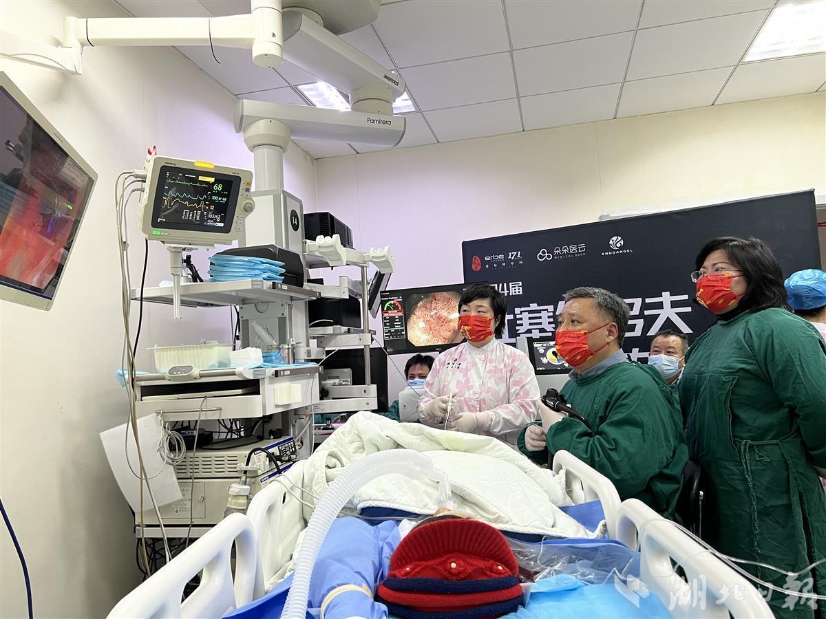 湖北日报讯(记者胡蔓)2月12日下午6时,在内镜辅助下,武汉大学人民医院消化内科主任于红刚教授手持高频电刀,小心翼翼地进行着直肠侧壁发育型息肉黏膜下剥离术。精准落刀之处,病变所在黏膜被整片剥离。