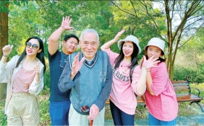 2020年国庆节韩老与年轻人逛东湖绿道时合影。