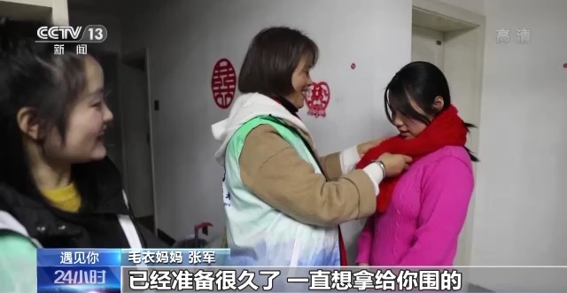“毛衣妈妈”,是当地人给张军这些志愿者们起的称呼。穿上新毛衣、围上新围巾,雨婷和毛衣妈妈坐在一起聊天,熟络了起来。听到雨婷说自己的数学成绩不是很好,张军表示可以找老师给她辅导。临走时,两人互相留下了电话号码,以后可以随时联系。