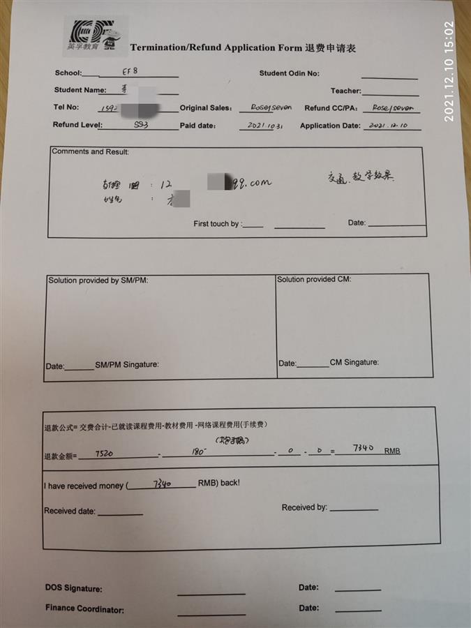 与杨女士有相同遭遇的还有李先生,他在英孚教育经开永旺店也遇到了退费难。李先生告诉极目新闻记者,去年12月10日,他申请退费,当时孩子的班主任万若思(音)表示2月10日会进行退费。