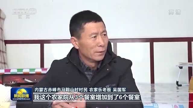内蒙古赤峰市马鞍山村村民 农家乐老板 吴国军:游客越来越多了,我这个农家院从3个餐室增加到了6个餐室,但是人多的时候也招待不过来,开玩笑说,这也是算幸福的烦恼了。去年我收入了8万多块钱,我买了车,又把房子重新翻建了一下。