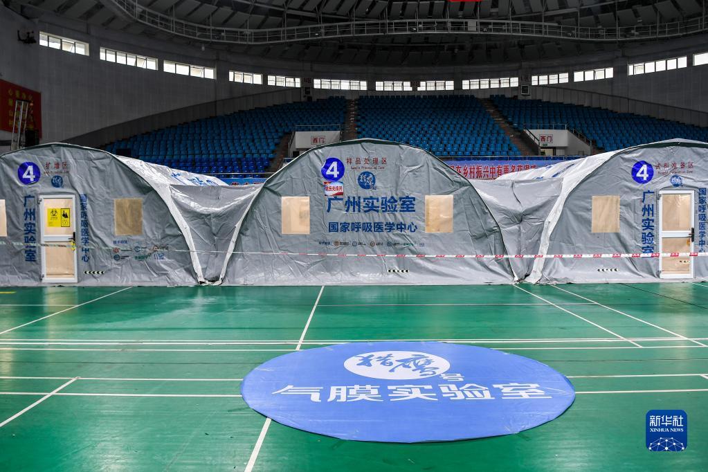 这是位于德保体育馆内的气膜实验室(2月13日摄)。