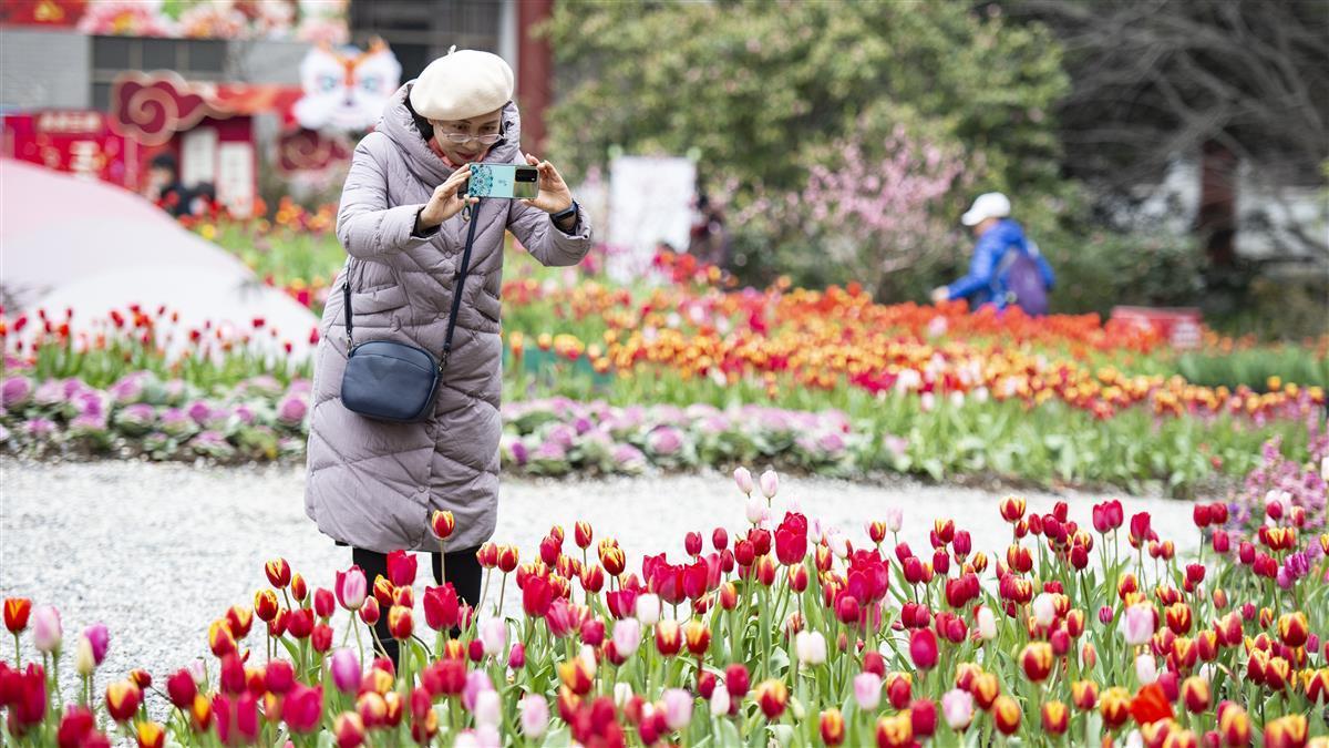 新春牡丹展也上新了一批新开花的品种,中外牡丹竞相开放,还有山茶、郁金香、桃花等春花笑脸迎客,游客可以在花海中打卡拍照,感受节日的美好。