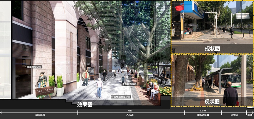 在空间更新方面,以“绣花”功夫精细化改善片区环境景观。通过架空杆线整治入地、箱柜迁出街道、断面慢行改造等一系列城市更新措施,打造公共交通加慢行的历史风貌区道路体系,提升沿街建筑立面及景观风貌,形成友好的步行体验。