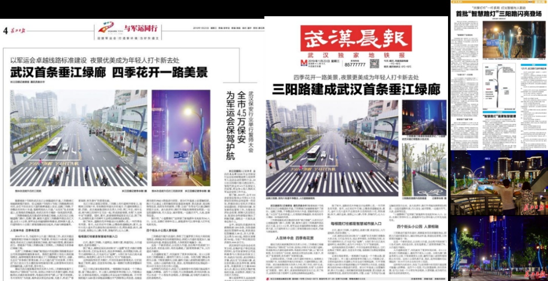 三阳设计之都的三阳路作为武汉市首条垂江绿轴,成为“2019世界军运会”重点线路示范段和“2019年武汉国际马拉松赛事”活动开幕仪式场地和起跑点,在国际舞台上展现武汉的城市形象,并作为武汉建设“全国第二批城市设计试点城市”的试点项目推介。