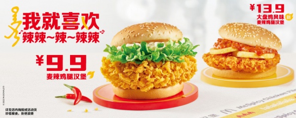 此外,2月19日11时至20时,消费者到麦当劳餐厅唱出“我就喜欢,辣辣辣辣辣”,还有机会领取麦辣鸡腿汉堡买一送一券,用腾格尔老师的“烫嘴新说唱”,一起喊出心中热爱。