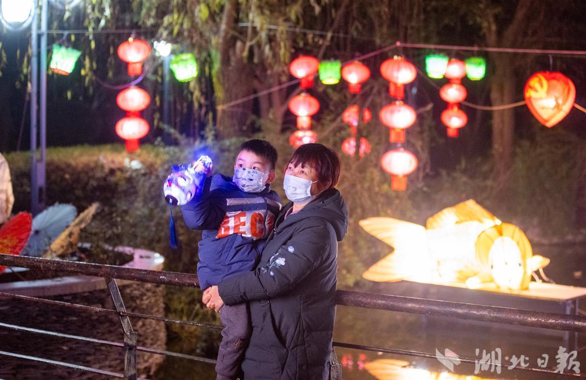 2月14日晚,武汉市江岸区百步亭社区各个苑区花灯璀璨,虎年生肖灯、冰墩墩吉祥物花灯、传统宫廷灯等各式各样的花灯琳琅满目,居民在自家楼下便可赏花灯猜灯谜,老百姓的灯会热闹又简朴。