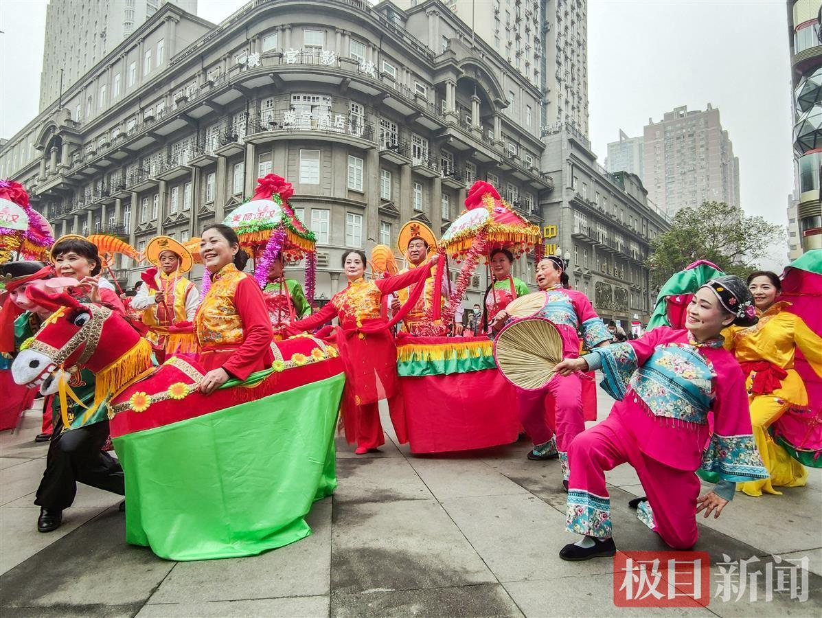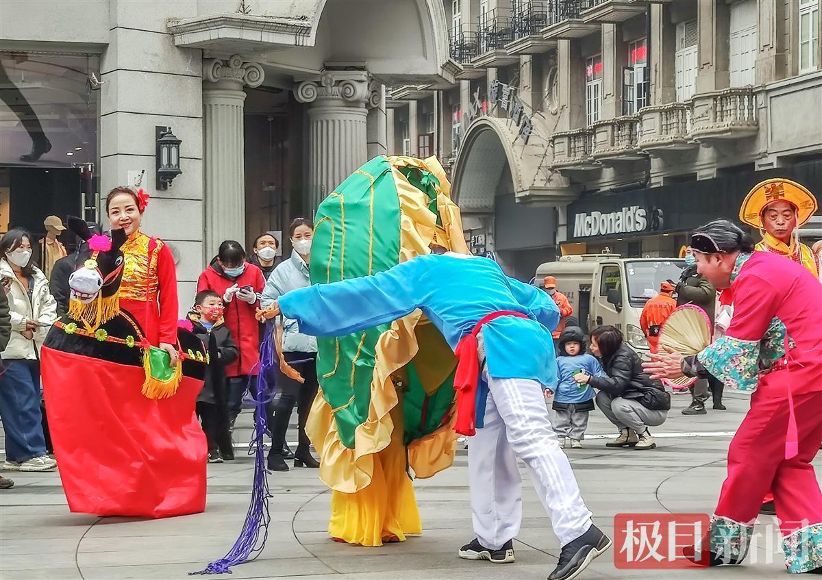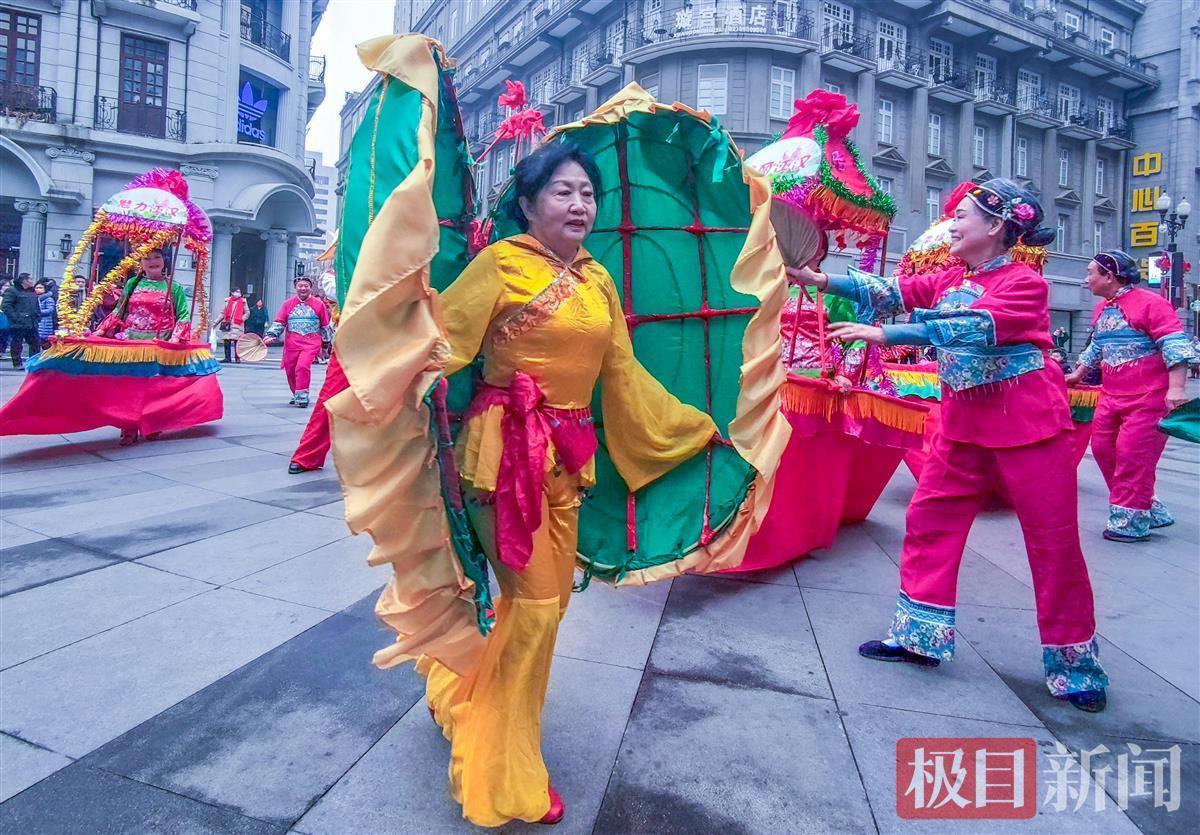 2月15日上午,为庆祝虎年元宵佳节,武汉市江汉区文化馆组织民俗演员,在江汉路步行街中心小广场举行了“卓越江汉幸福年”民俗表演闹元宵活动。
