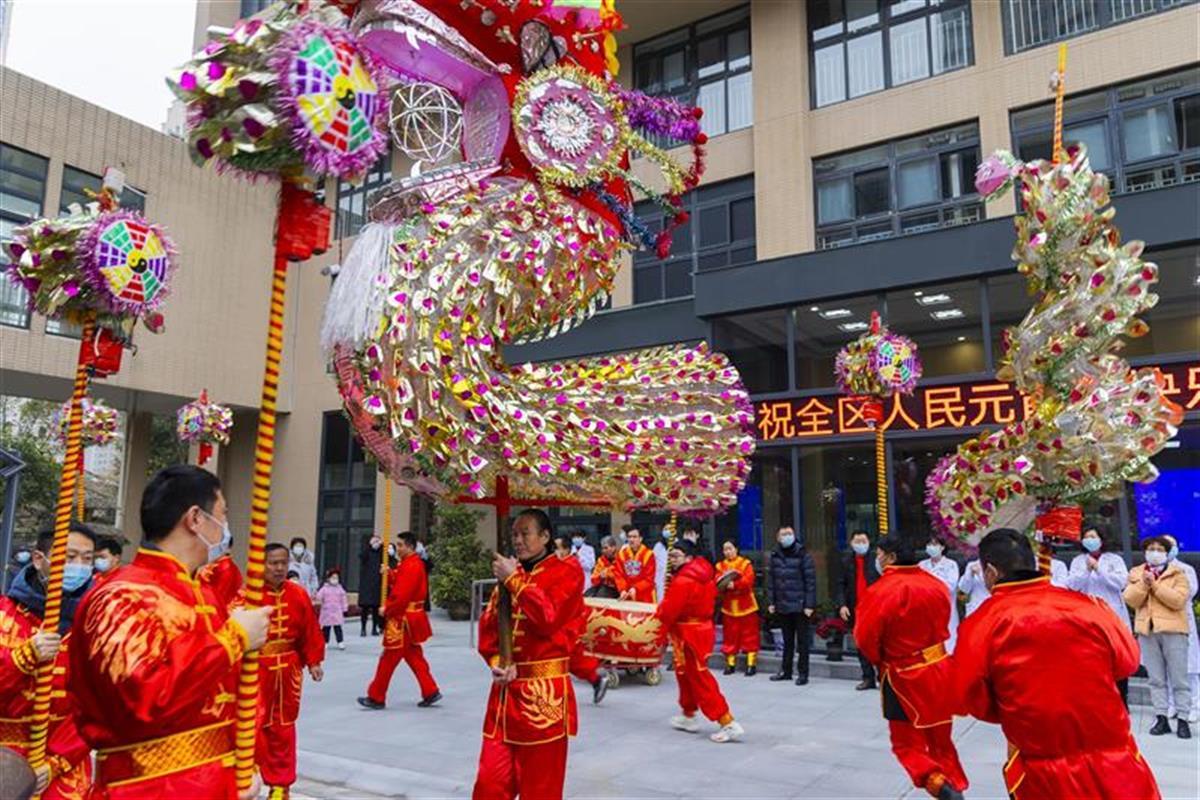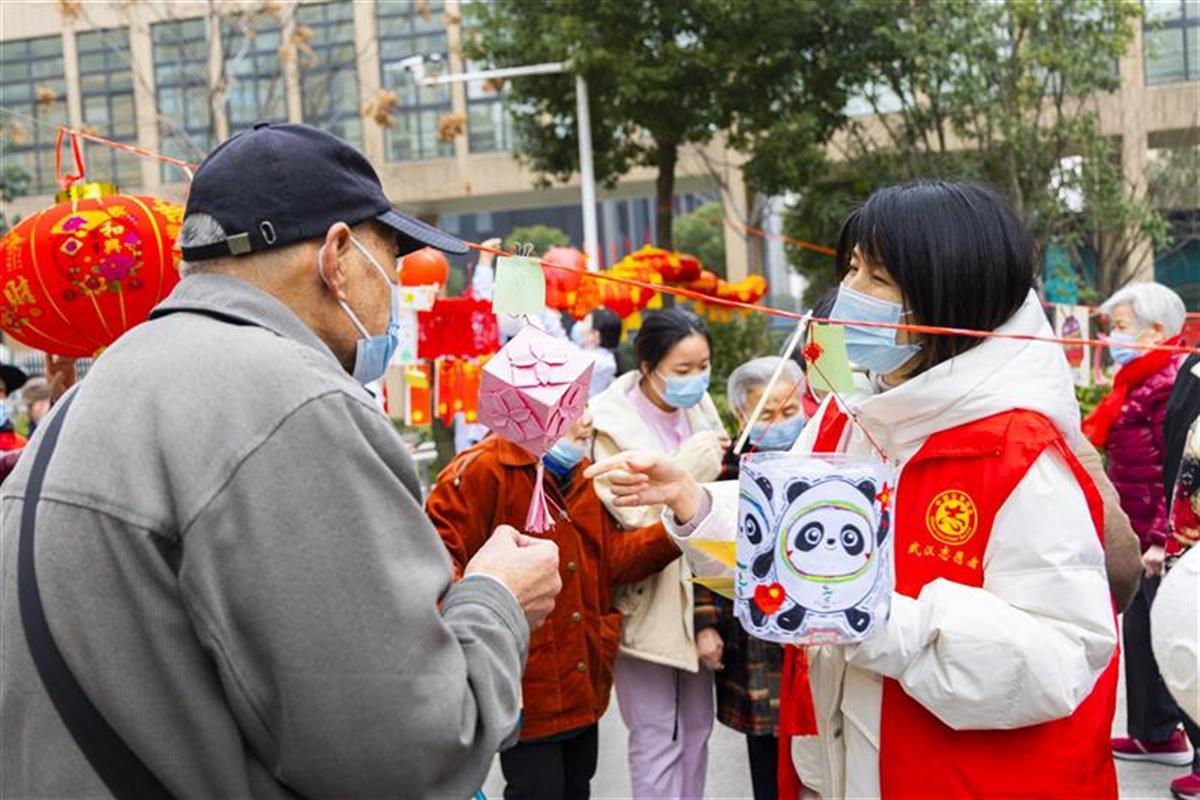 2月15日,元宵节。当天上午,武汉市汉阳区社会福利院一楼后院室外广场一片喜庆热闹景象。