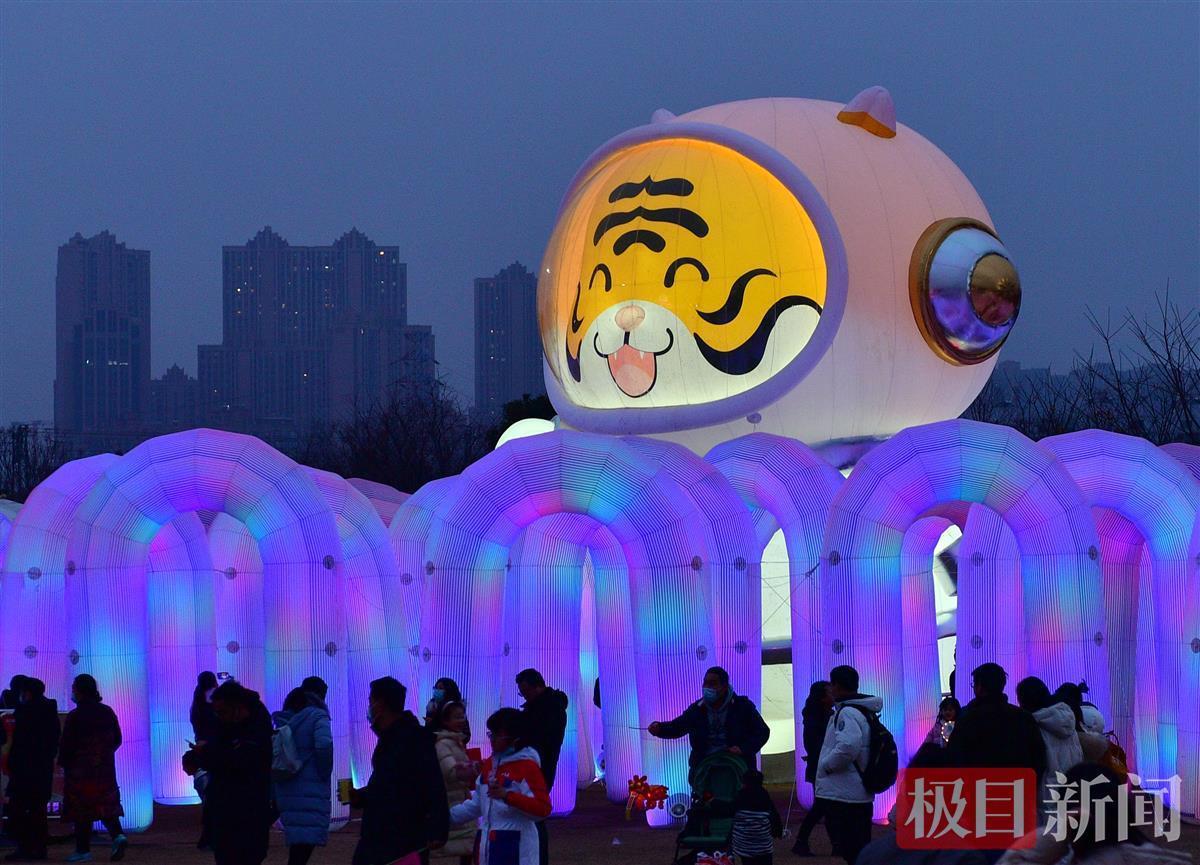 今年虽没有大型灯会,但园方给游客特别设计了老虎造型气模灯,共有十余只萌态可爱的“老虎”造型气模灯,分别是东广场10米高的“博虎闹新春”,东门草坪上15米高的“虎虎生财”,众乐苑占地1600平方米的“太空虎迷宫、南狮贺新春”等。