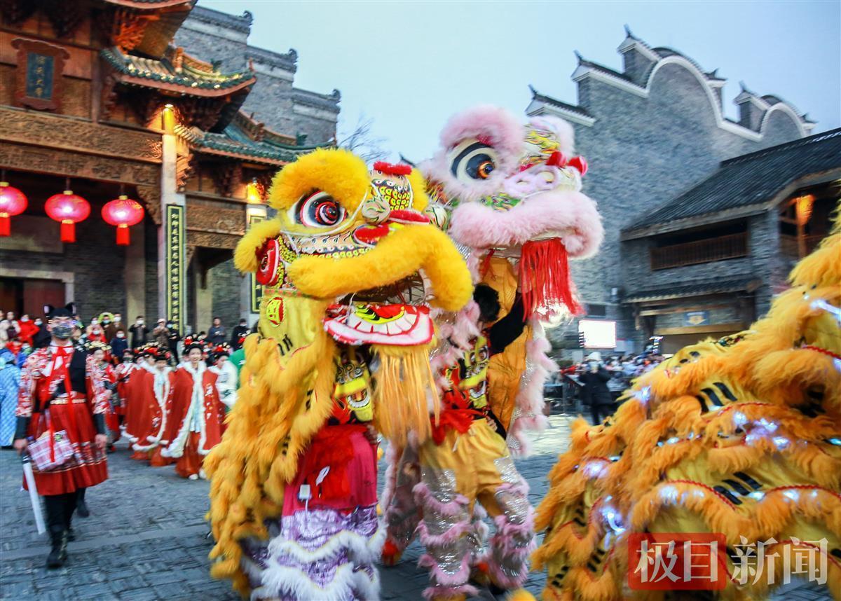 “在这里,寻到了纯正年味。”市民吴女士家住附近,过年时一家人就来看了好几场舞狮表演,今天又带着孩子来感受元宵气氛。