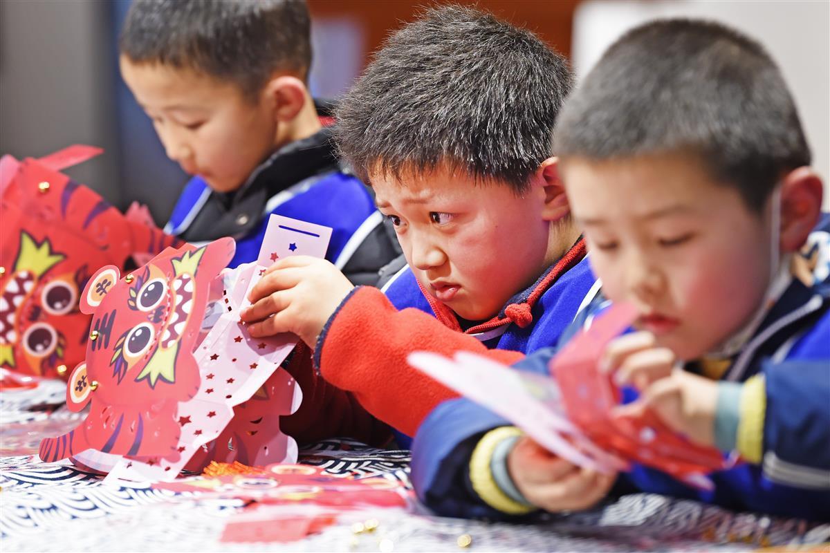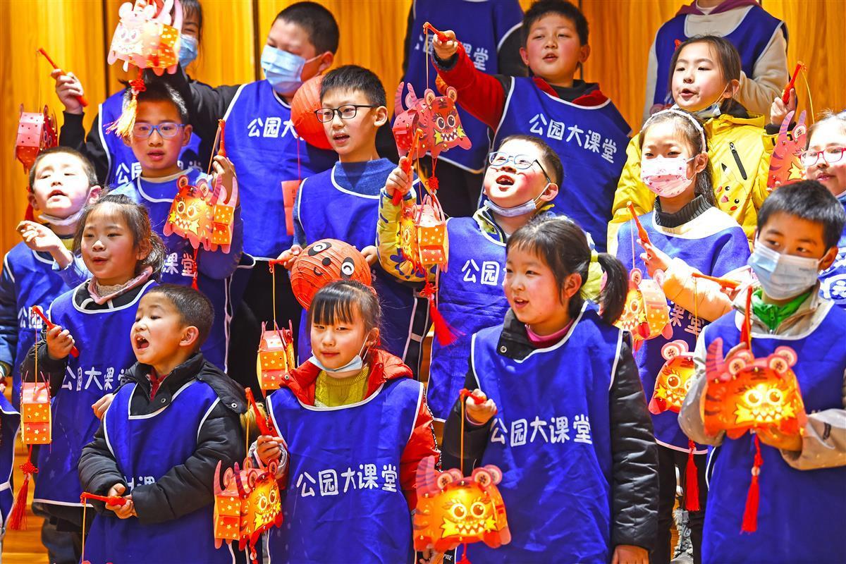 2022年2月15日,农历正月十五,武汉紫阳公园开展“正月十五花灯俏——闹元宵、猜灯谜、虎年灯笼制作”主题活动,吸引近20名小学生参加,孩子们在活动中学习春节传统习俗,传递着节日的喜庆。