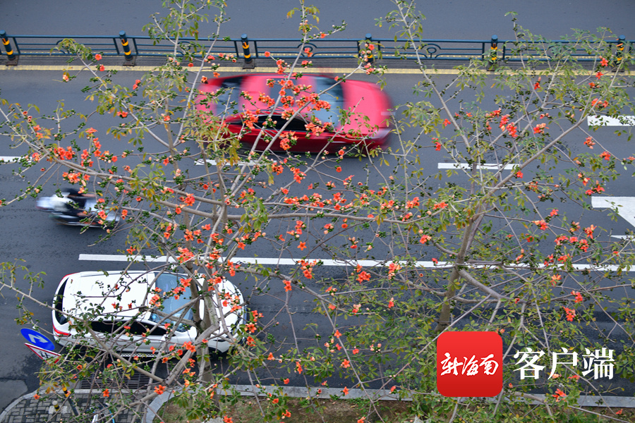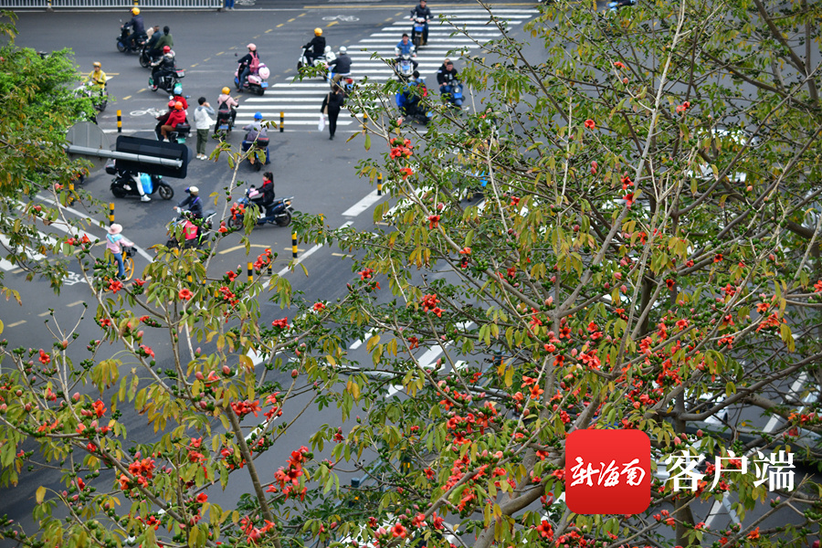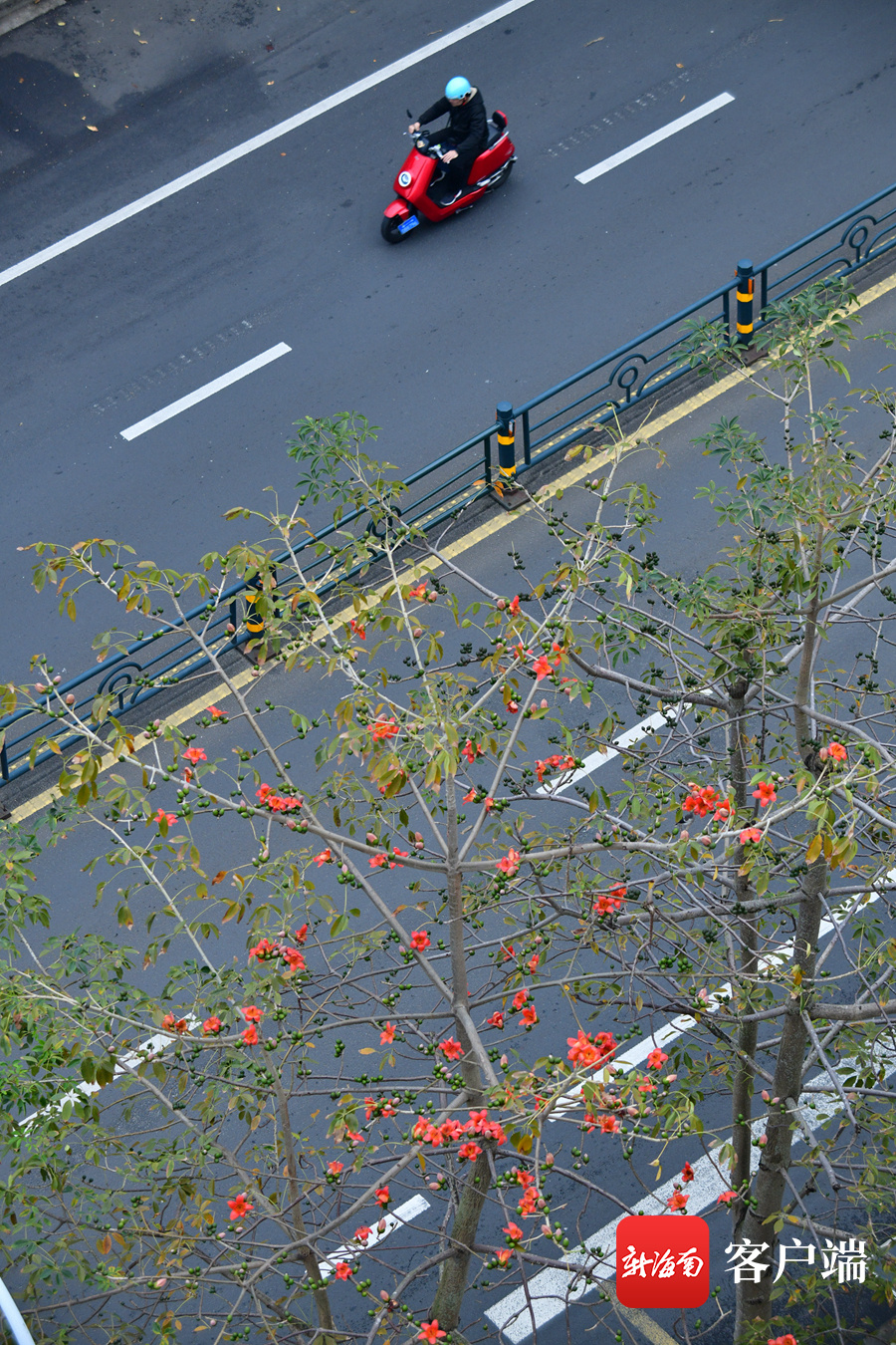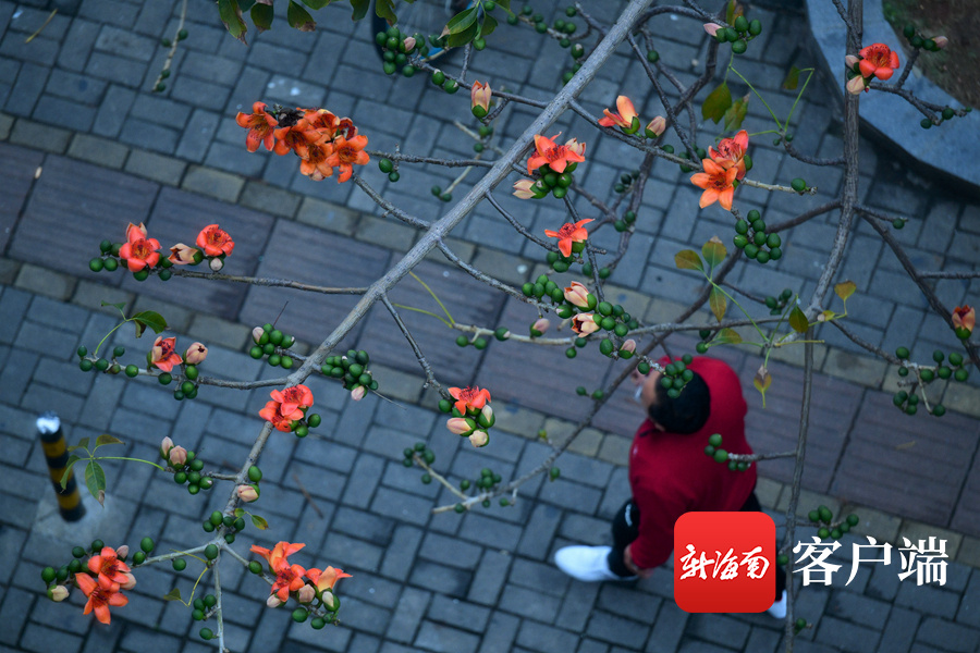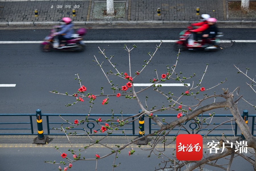 2月15日,海口五指山路上的木棉花悄悄开了。记者 陈卫东摄