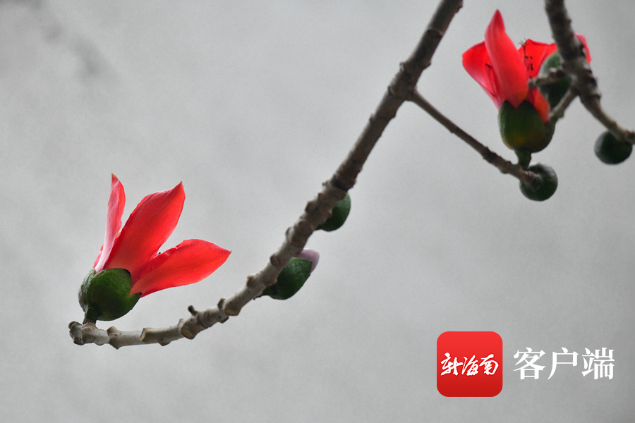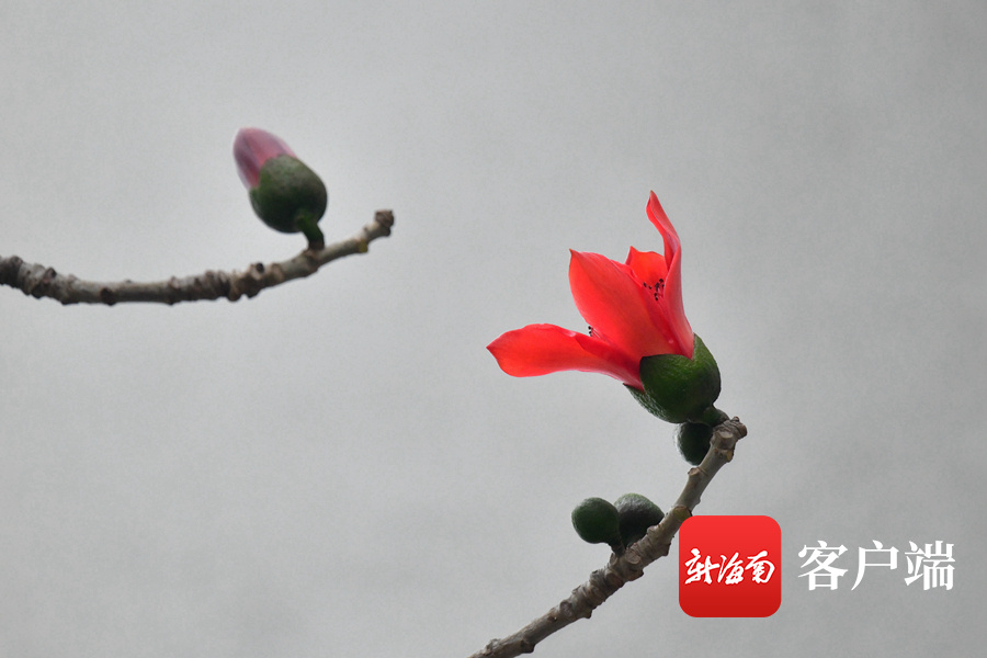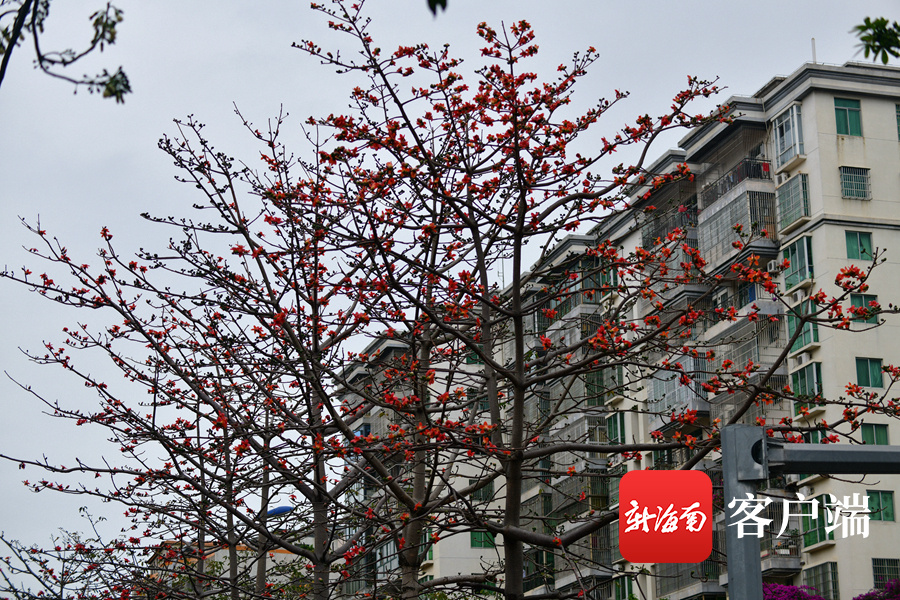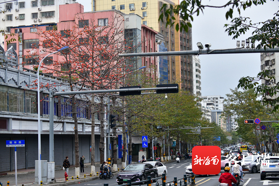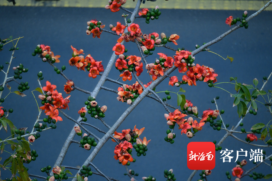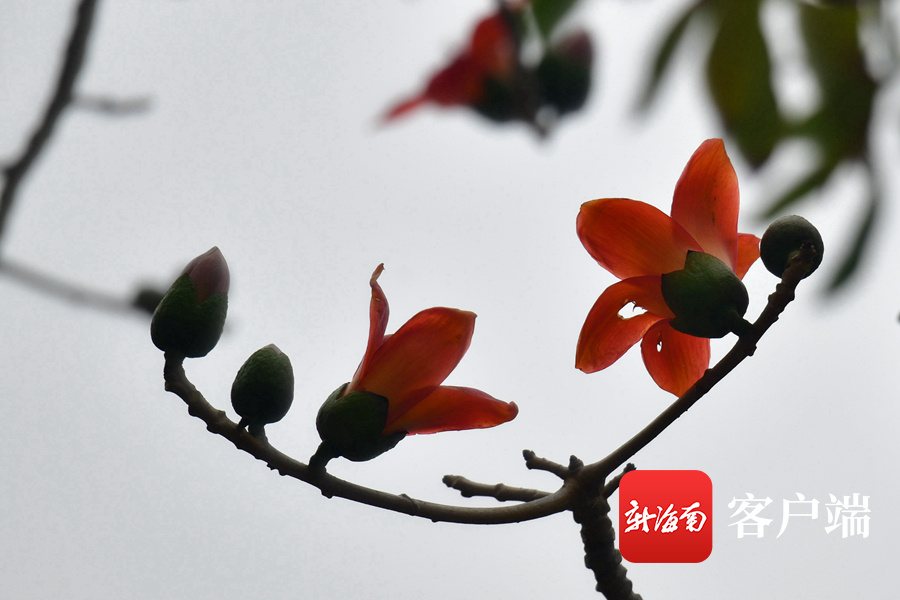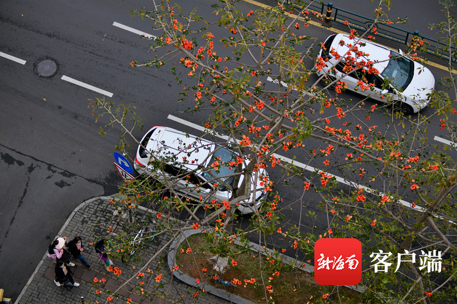 2月15日,海口五指山路上的木棉花悄悄开了。记者 陈卫东摄
