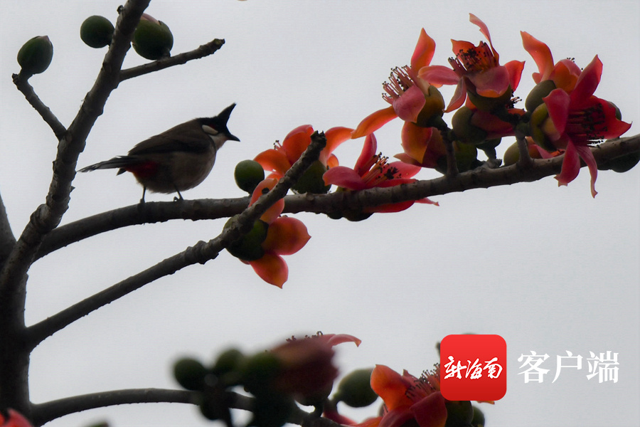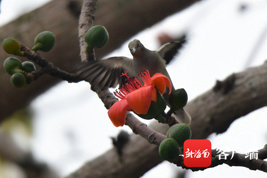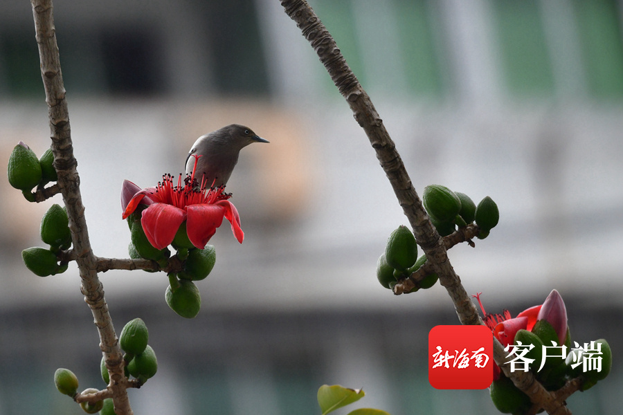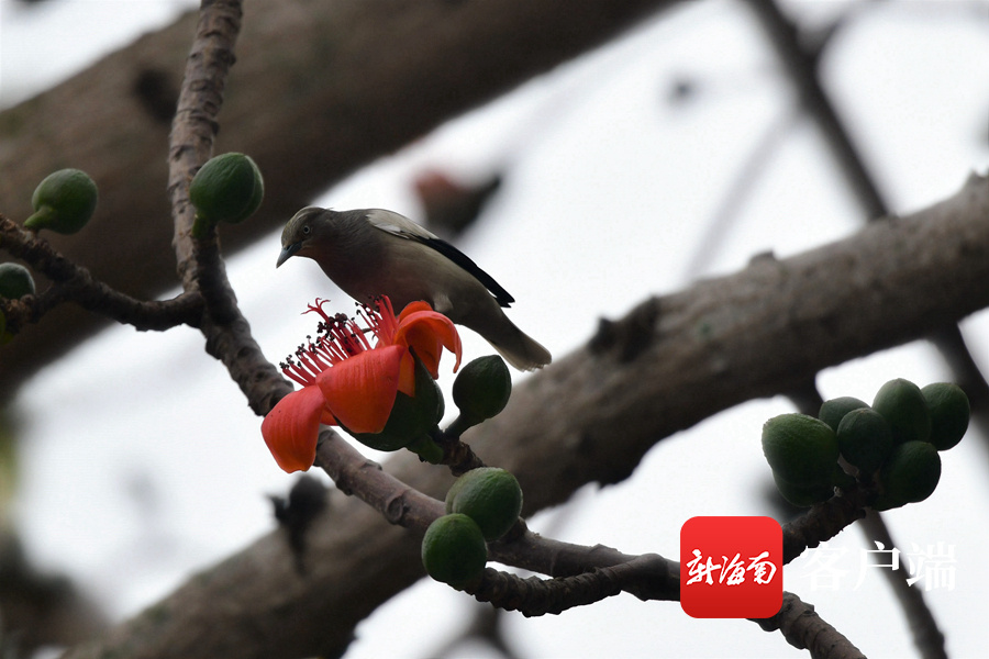 小鸟爱吸食木棉花蜜。记者 陈卫东摄