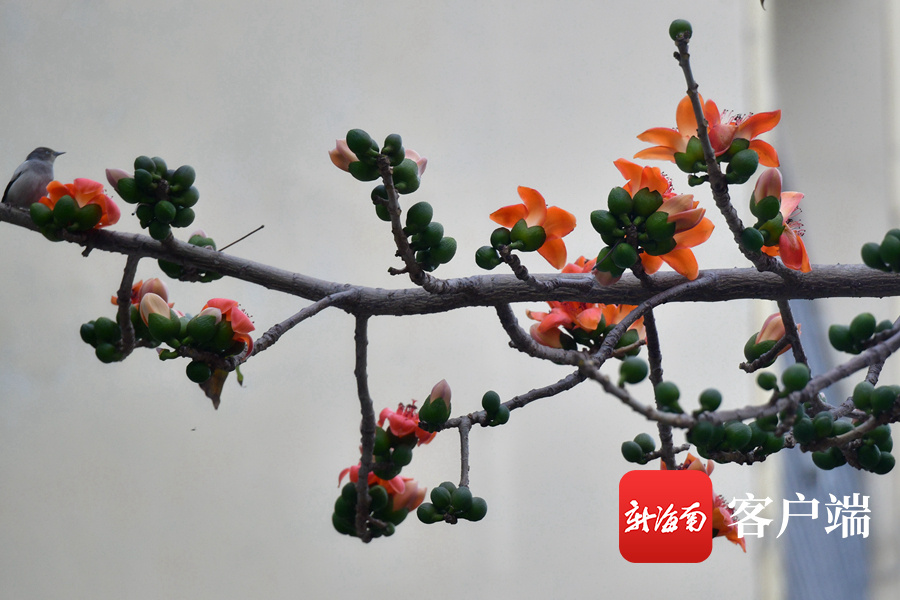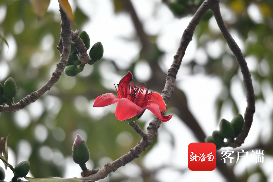 新海南客户端、南海网、南国都市报2月16日消息(记者 陈卫东)春天到了,海口木棉花悄悄开了。在万绿园、凤翔湿地公园有几株木棉树开出了鲜艳的花朵,而市区木棉树最集中的五指山路,也有十余株木棉树开了花。由于气候的原因,海南南北温差大,木棉花也是从南开到北。所以,海口的木棉花开得最晚。眼下,海口还不是盛花期,再过半个月,海口的木棉花将会更加灿烂。