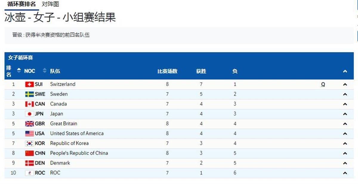 下一轮比赛中国女子冰壶的最后一个对手是加拿大队,比赛时间为2月16日20时05分,中国女子冰壶队还存在着理论上晋级四强的可能。