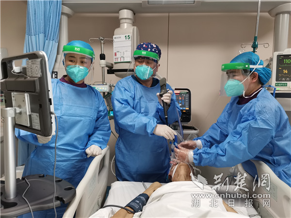 呼吸与危重症医学科医护人员在为吴爹爹取气道异物。通讯员供图