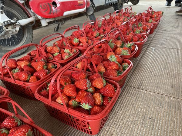 打包上市的本地草莓。