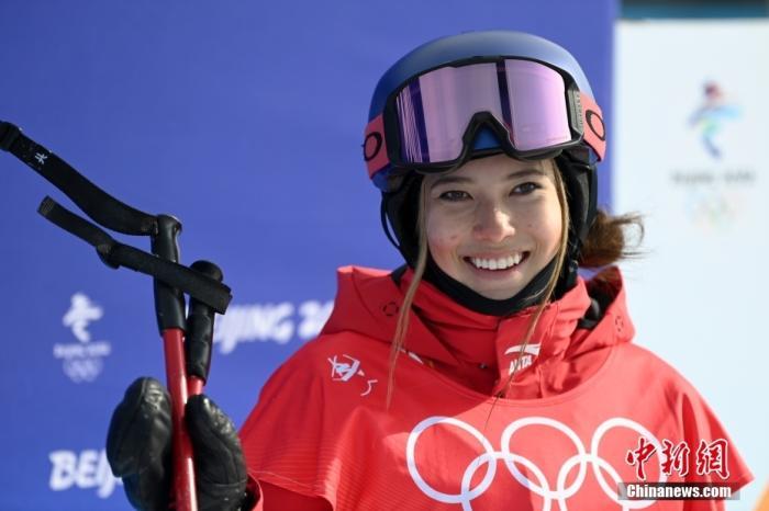 2月17日上午,北京冬奥会自由式滑雪女子U型场地技巧资格赛举行,谷爱凌在两轮比赛中分别跳出93.75分和95.50分,晋级决赛。中新社记者 翟羽佳 摄