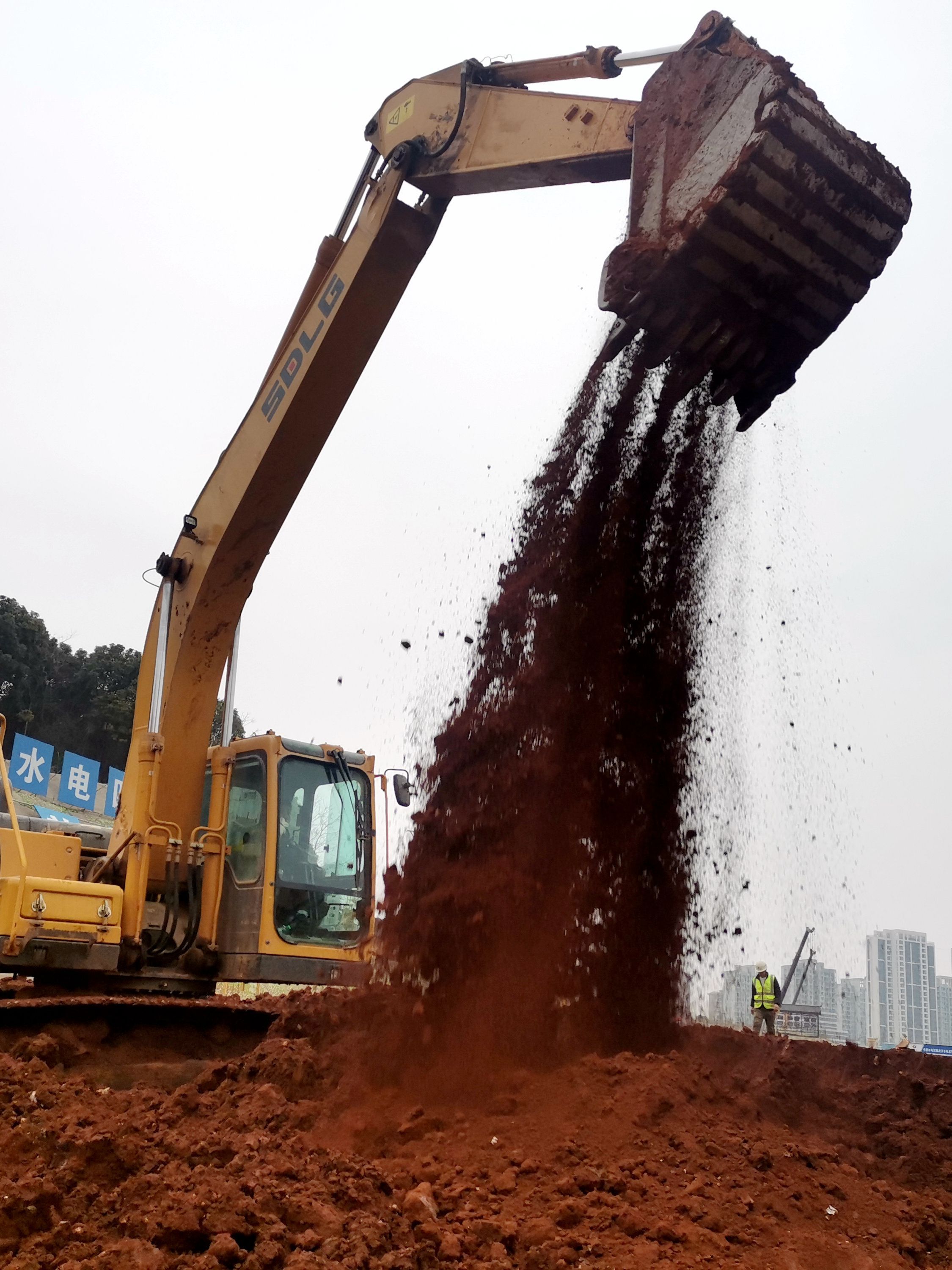 在巨龙大道站,两台大型挖掘机伸出长臂,往7米深的基坑内回填土方,土色呈黄褐色。武汉地铁集团建设事业总部二级项目经理王攀说:“这是项目部专门准备的优质回填土,要求好压实,土中不能有石块等块状物体。”