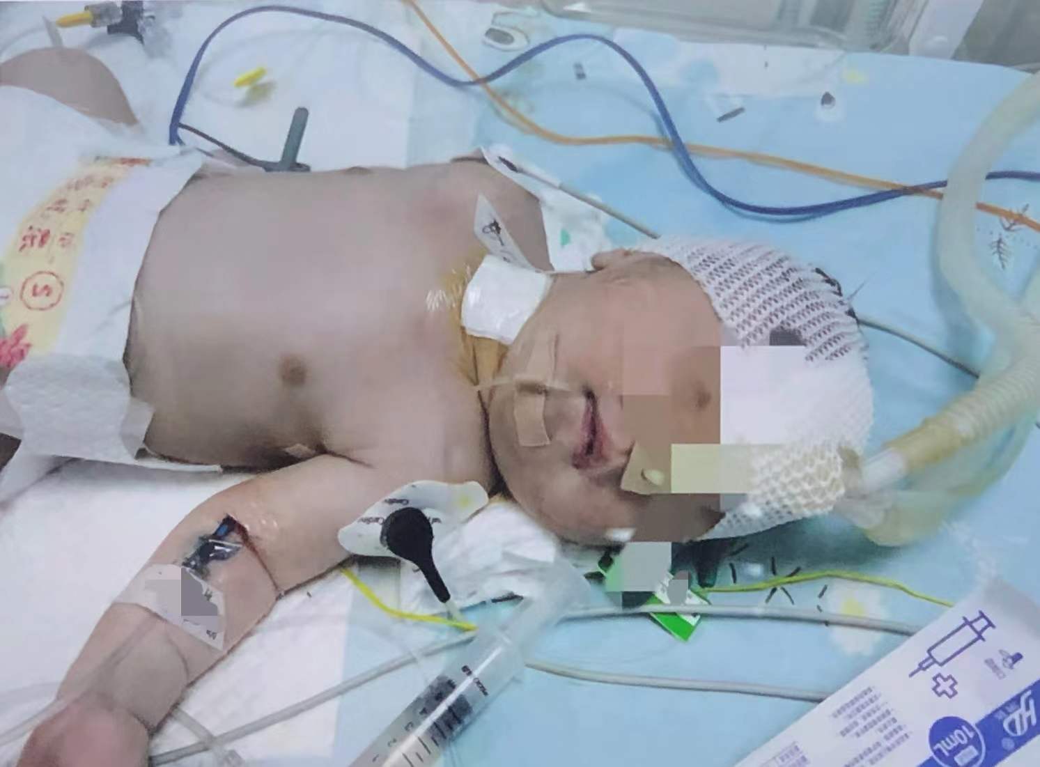 “那个夜晚太难熬了。”薛先生回忆,周宝宝被直接送入新生儿重症监护室,他心情忐忑;晚上12时,医生通知要给宝宝做抢救;23日凌晨5时,收到第一次病危通知书。他又惊又怕,腿发软、手发抖。