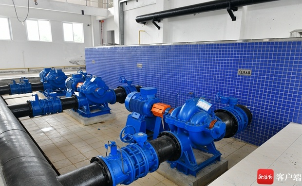 万宁自来水厂,反冲水泵在不停地运转。记者 陈卫东摄