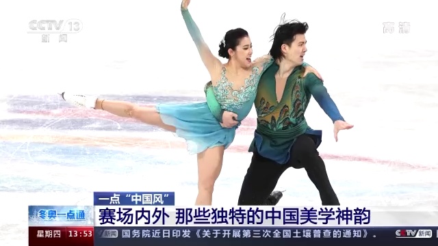 绿水青山,那抹青绿惹人醉。2月14日,北京冬奥会花样滑冰冰上舞蹈自由舞比赛在首都体育馆举行。中国选手王诗玥/柳鑫宇穿着灵感源于《千里江山图》的比赛服登场。
