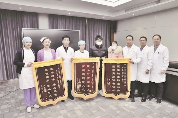 患儿家属给医护人员送锦旗致谢