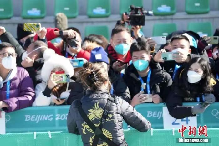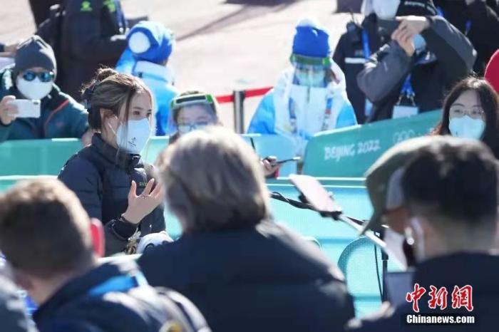 谷爱凌赛后接受媒体采访。中新社记者 毛建军 摄