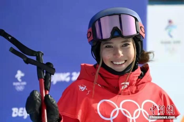 2月15日,谷爱凌凭借最后一跳的完美发挥摘得坡面障碍技巧银牌。中新社记者 翟羽佳 摄