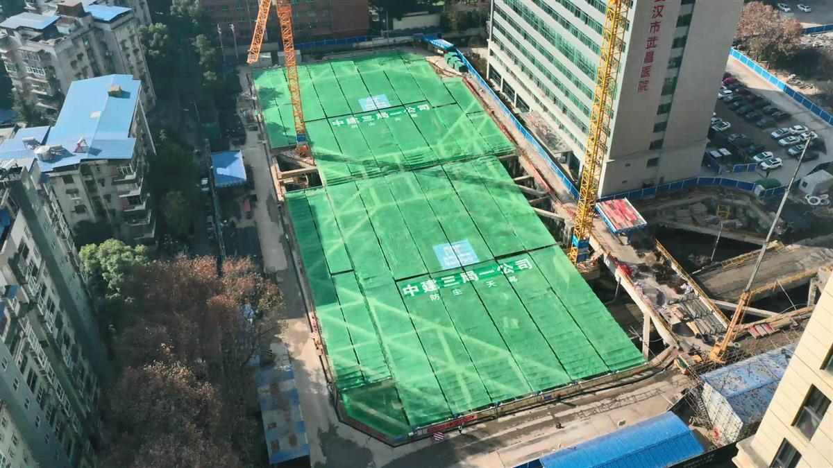 在武昌医院东区综合实验楼项目施工现场,5600平方米绿色“天幕”罩住了建筑工地上空,犹如一块巨型草坪。天幕之下,施工作业井然有序。整个现场“与世隔绝”,施工过程既高效又环保。“项目目前正处于地下室结构阶段。复工复产后,项目全员投身为5月20日建筑物出地面正负零的施工目标中去。”项目经理吴诚说。