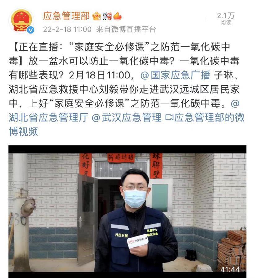 直播选取了室内烧机制木炭取暖、室内吃炭火火锅、燃气热水器洗浴等场景,湖北省应急救援中心副主任刘毅解读相关场景下的安全注意事项,并与广大网友进行互动解答。此外,刘毅还就车内空调取暖等一氧化碳中毒高发场景和有限空间安全进行直播讲解。